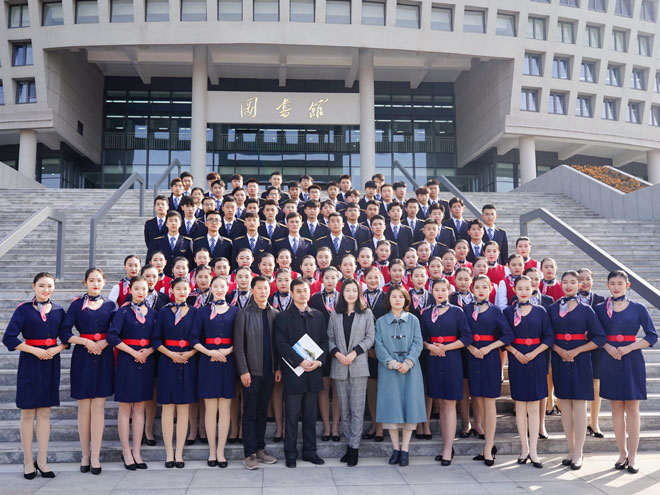 从老师手里接过制服的18秋同学们也正式成为一名准民航人。学院院长助理刘金松老师给穿上制服的年轻准民航人提出了希望和要求。穿上制服才只是民航人的起步,今后的路还很长,为了实现飞天梦想,希望身着制服的同学们在尊重制服、爱护制服的同时,要更加热爱民航事业,恪守职业道德,实现个人的蓝天梦。