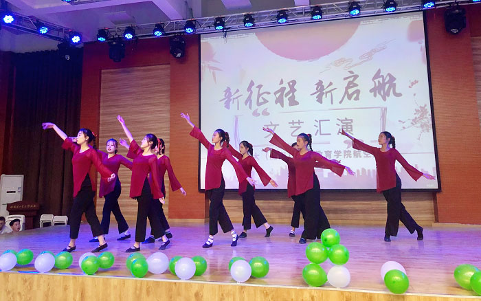 晚会一开始开场舞的同学们冲上了舞台,动感的音乐瞬间点燃了场内的气氛,场内观众被热烈的舞蹈所感染,欢呼声四起。而后,通过《礼仪手语操》《空乘礼仪操》等节目了解了手语礼仪以及相关的沟通方式,节奏明快,鼓励向上;《军体拳》的登场则是全场的亮点,各种武术表演,展示了练武之人的气势,让观众们热血沸腾,连连叫好;舞蹈《九儿》熟悉的旋律和名字,把我们带到了红高粱的那片田野里;芭蕾舞《不完美小孩》也给我们带来了观赏性极强的视觉艺术,感受一举一动都要有美感;情景剧《伴您同行》便打破常规,从一进场便引发观众捧腹大笑,节目更是满场包袱,绝不冷场;而歌曲串烧拥有更高的人气,俊男靓女盛装出演,吸引观众们的眼球。最终《军拳》呼声最高,赢得了本次晚会的优秀表演奖。