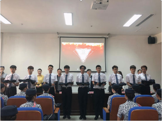 为了培养学生穿着制服的习惯、了解制服穿戴的规范、进一步塑造航空服务型人才应有的形象、增进学生对学校对行业的归属感和责任感,5月29日下午,2019春季航空服务专业授装仪式在研究院报告厅隆重举行。哈工大(威海)继续教育学院院长助理刘金松、职业教育部副部长张君华应邀参加此次授装仪式。